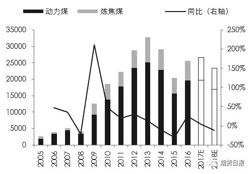 在政策限制进口和国内供应恢复的背景下,2018年国内煤炭进口量将回落,预计全年进口量减少9.7%,至23310万吨。其中,动力煤进口量减少12%,至16893万吨。