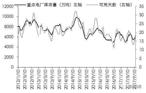 电厂库存方面,重点电厂煤炭库存由2016年年初的5341.2万吨降至2017年10月上旬的2486.3万吨,降幅为53%。