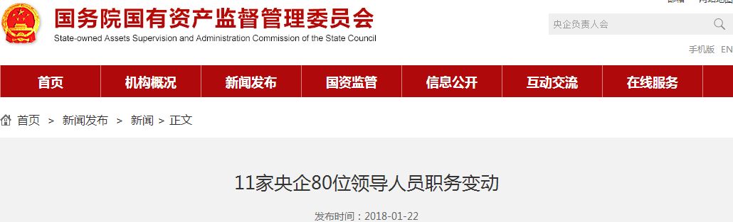 国资委不再任命央企总经理,11家央企80位领导人员变动公布