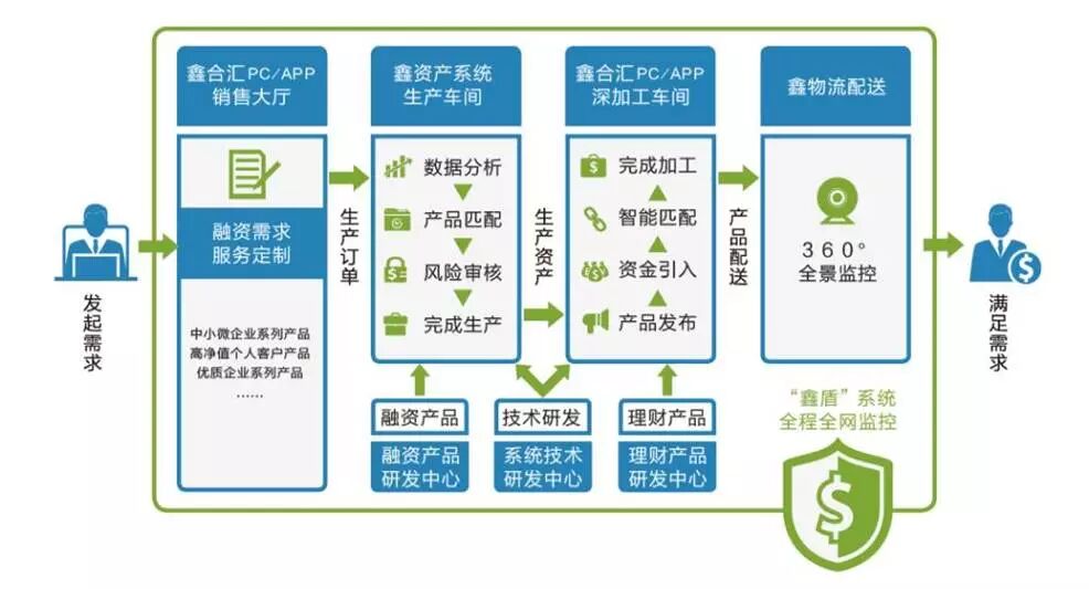 鑫合汇自2013年成立以来,一直致力于打造金融产品研发、资产生产加工、风险控制及资金匹配等核心能力,开创了领先行业的“互联网金融工厂”模式。并通过旗下融资服务平台“七桥”、网贷信息平台“鑫合汇网贷”以及自主研发的“鑫盾”风控系统,建立了“智造好资产”的生态体系。为中小微企业与个人提供一站式的金融解决方案。