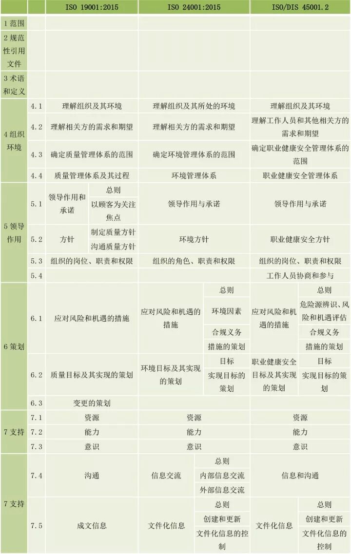 职业健康安全管理体系发展历程 职业健康安全管理体系是在20世纪80年代后期兴起的,当时一些跨国公司和大型现代化联合企业,为强化自己的社会关注力和控制损失的需要,开始建立自律性的职业健康与环境保护的管理制度。 1996年,英国颁布了《职业健康安全管理体系指南》(BS8800);同年,美国工业卫生协会(AIHA)制定了《职业健康安全管理体系》的指导性文件;1997年,澳大利亚、新西兰提出了《职业健康安全管理体系原则、体系和支持技术通用指南》草案;同年,日本工业安全卫生协会(JISHA)提出了《职业健康安全管理体系导则》,挪威船级社(DNV)制定了《职业健康安全管理体系认证标准》。 在1999年,英国标准协会(BSI)、挪威船级社(DNV)等13个组织提出了职业健康安全评价系列(OHSAS)标准,即OHSAS 18001《职业健康安全管理体系——规范》和OHSAS 18002《职业健康安全管理体系——OHSAS 18001实施指南》。2007年,OHSAS 18001得到进一步修订,是其与ISO 9001和ISO 14001标准的语言和架构得到进一步融合。 直到2013年,国际标准化组织(ISO)开始编制一项新的标准——ISO 45001《职业健康安全管理体系 要求及使用指南》,用于取代OHSAS 18001标准。 ISO 发布《职业健康安全管理体系 要求及使用指南》DIS2草案 为什么要将OHSAS 18001转化成ISO标准? 全球通用 更权威 更易整合 更易管理 首先,根据调查,目前大约有45个国家利用OHSAS 18001标准架构管理其职安卫(职业健康管理、安全管理、卫生管理简称)系统。虽然应用范围很广,但并非全球通用,而转化成ISO标准,仅其会员就有近70个国家,使其应用范围得到仅一步扩大。同时,ISO标准是全球认可的标准,不仅使其应用范围进一步扩大,另外使其更具有权威性。 其次,ISO拥有国际性的专业知识。通过ISO成员组织,有近70个国家参与方或者观察员的方式参与到ISO 45001的发展中来。 第三,现在许多组织都在使用ISO管理体系标准,这将更加使其与其他职业健康安全标准的整合更加容易。同时,对于许多小企业或许只有一个人员在管理安全以及环境方面的事宜,所以委员会也更加关注与ISO 14001相整合的可能性。 ISO 45001与OHSAS 18001的区别 ISO 45001的构建是在OHSAS 18001已有的规范上,其主要目标是相同的,都是为提高组织的职业健康安全绩效。同时,通过以下表1框架的对比,也存如下不同之处: 使用了ISO管理体系的高级结构 更加关注“组织环境” 强调最高管理者的职责和领导作用 更加关注于管理职责 强调了基于风险的思维 更加关注于绩效的监视与测量 表1 ISO 45001.2与OHSAS 18001:2007的对应关系 在新标准中,一个组织将不仅仅专注于其直接的健康和安全问题,而是会考虑到更大的社会期许。组织需要考虑到他们的分包商和供应商,还有比如说他们自身的工作会在周围对相邻的邻居造成怎样的影响。这会比仅仅关注与内部员工的条件更加广泛,意味着组织不能仅仅将其风险通过外包“嫁接”出去。 ISO 45001强调,这些职业健康和安全因素体现在组织的整个管理体系中,需要从管理和领导层获得更高程度的认可。这对于那些目前习惯于将责任授权给一个安全经理而不是完全地融合入组织的运行中的使用者来说,将是一个很大的变化。ISO 45001要求职业健康和安全因素是组织完整管理体系中不可分割的一部分,而不再只是附加的部分。 标准要求组织在策划职业健康安全体系时,应确定组织所需要应对的风险和机遇。风险和机遇存在于组织的危险源、合规性,以及所处的环境和相关方需求和期望中。标准要求组织要采取应对风险和机遇的措施,以确保体系能够实现组织的预期结果,实现组织在职业健康安全方面的持续改进。 ISO 9001、ISO 14001、ISO 45001 的相同点和不同点 ISO实施三个标准最大的不同点是其对象不同: · 组织按ISO 9001标准建立的质量管理体系,其对象是顾客。 · 组织按ISO 14001标准建立的环境管理体系,其对象是社会和相关方。 · 组织按OHSAS 18001标准建立的职业安全健康管理体系,其对象是员工。 ISO实施三个标准的相同点: · 组织实施管理的总方针和目标相同。 · 三项标准使用共同的过程模式结构,结构相似以方便使用。 · 体系的原理都是PDCA(计划-执行-检查-改进)循环。 · 都需要有文化的管理体系。 · 都明确要有文件化的职责分工。 · 都提出了通过体系运行实现持续改进。 · 都提出了遵守法规和其他要求的承诺。 · 都提出用内部审核和管理评审来评价体系运行的有效性、适宜性和符合性。 · 都要求对不符合项进行管理评审并加强培训教育。 · 都要求组织的最高管理者任命管理者代表,负责建立、保持和实施管理体系。 ISO 9001、ISO 14001、ISO 45001框架整合 在国内,组织都是将各个管理体系进行整合,质量、环境、职业健康安全管理体系作为ISO标准,均使用了高阶结构,为体系的整合提供了便利。表2将三个体系的框架进行了对应于合并,可供读者参考。 表2 ISO 9001、ISO 14001、ISO 45001框架整合 组织保持健康和安全的5步法 组织可通过以下五步,使其工作人员在工作过程中保持健康和安全: 第一步,识别工作场所的所有过程和活动; 第二步,在工作人员的帮助下,检查是否某些活动中有可能造成伤害的重大危险源。比如注意一些危险情况/过程,包括高处工作、机械、电气设备、化学品、建筑活动和农场工作等等。 第三步,降低可能导致严重损伤(事故或长期病痛)