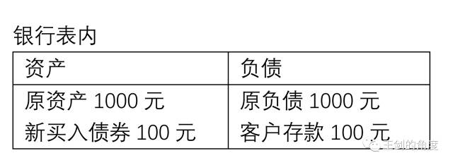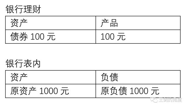 原先,客户持有理财100元,理财资产端假设是债券100元。同时,银行表内资产负债假设各有1000元。