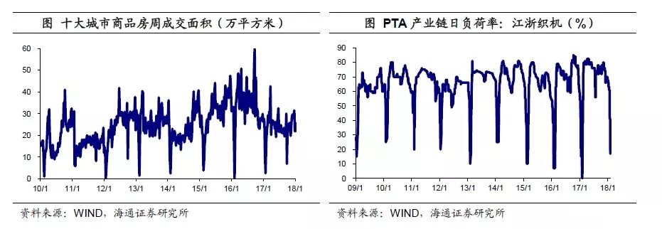 从中观行业层面来看,“春节效应”的成因显而易见:一方面,像商品房等销售需要向政府部门登记备案,春节较长假期造成商品房销售登记的放缓,形成了成交面积的低基数,其它部分商品的销售也或因春节期间经销商放假歇业和快递停运而放缓;另一方面,春节期间多数工厂工人放假,生产停工,比如每临春节期间江浙织机负荷率骤降,形成了短暂时间内生产的低基数。当然,随着节后的陆续复工,“春节效应”的影响也很快消除,到3月大多数行业均进入正常生产经营状态,因而主要受到影响的就是1-2月。