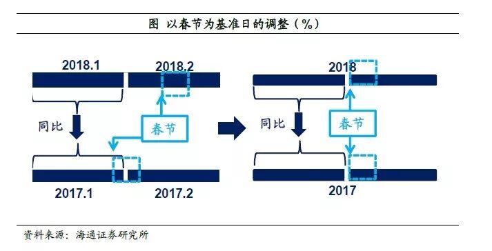 1月宏观和中观经济数据向好,是否能够就此说明18年经济的“开门红”?我们认为,下此判断为时尚早。统计局合并发布数据的初衷即在于1月和2月数据常受到节日因素的扰动,春节假期错位的影响不可忽视。