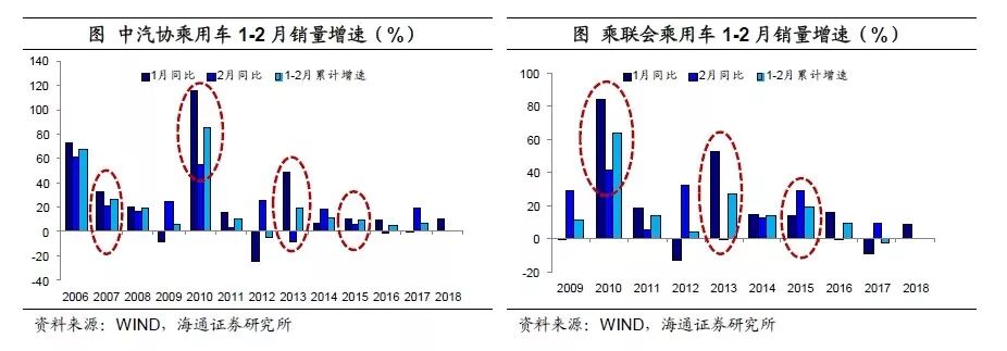 从中汽协和乘联会的数据来看,春节在2月的年份,1月乘用车的销量增速通常也会偏高。中汽协的数据中,07、10和15年1月的乘用车销量增速均高于2月, 13年1月乘用车销量同比增长了49%,但2月同比下降8%,1-2月累计增速降至20%。乘联会的数据中,10和13年也均符合此规律,但15年有所不同,15年1月乘用车销量同比增加13%,2月进一步高增至29%。这背后可能是两方面造成,一方面,与生产停工类似,春节歇业、休假,使得实际汽车销售的天数减少,另一方面,节日前夕也是买车回家过年的时期,商家也会采取活动促销。
