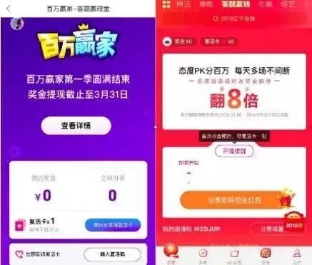 简单粗暴的玩法很快吸引到了不少国内用户,随着邀请好友赠送复活卡机制带来的病毒式传播,以及广大媒体的多轮传播与渲染带来的感官刺激,直播答题渲染迅疾火遍国内。第一波吃螃蟹的平台初尝胜果更引来了其它平台一波又一波的模式复制。