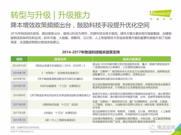 2017年中国物流科技行业报告:菜鸟、京东、顺丰、运满满正在做这些事