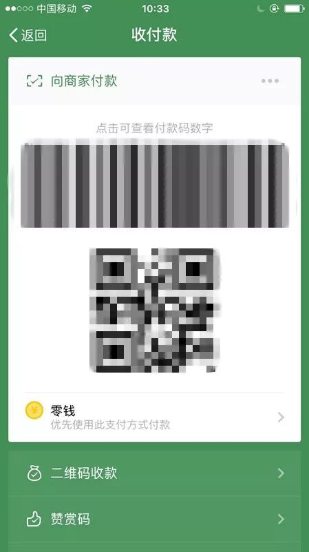 点击微信右上角的 “+”,进入“收付款” - “二维码收款”,就会出现一个二维码页面