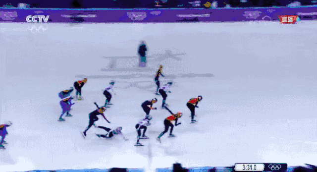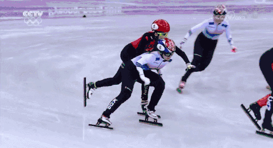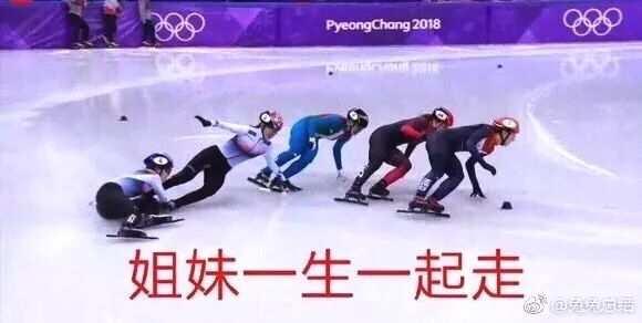 女子短道速滑1000米决赛,韩国选手崔敏静和沈锡希窝里斗,崔敏静为了抢位置超越沈锡希,结果在决赛场上双双摔倒,无缘奖牌~