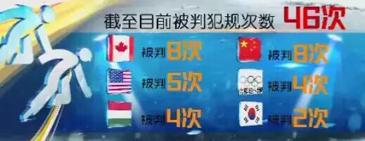 作为冰上项目强国,赛事开出的46次犯规罚单中,加拿大就有8次,跟中国队名列第一,东道主韩国只有2次。