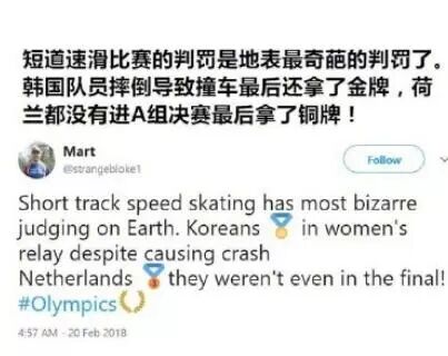这次冬奥会,让人最愤怒的是2月20日短道速滑女子3000米接力决赛,中国和加拿大一起做了难兄难弟,韩国队员摔倒干翻了加拿大队员,最终夺冠。