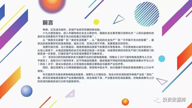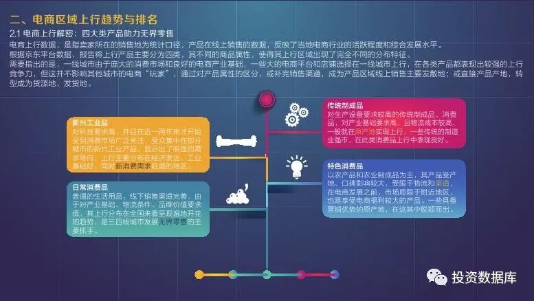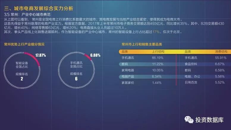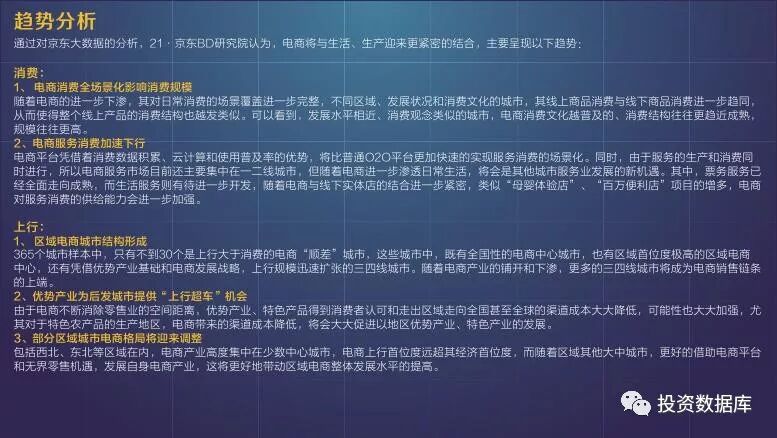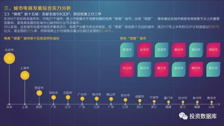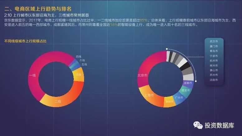 2京东BD研究院发布了《2017城市电商消费与上行水平报告》,该报告首次将电商商品和服务、消费与上行相结合,分析区域和城市电商产业“吞吐”规模