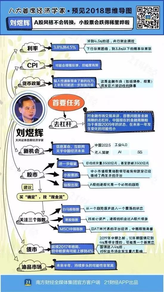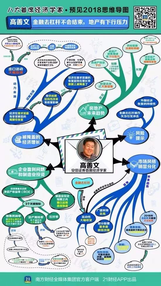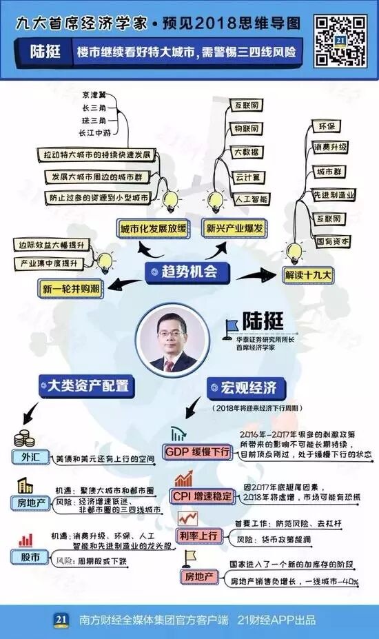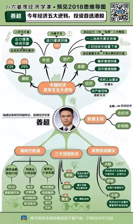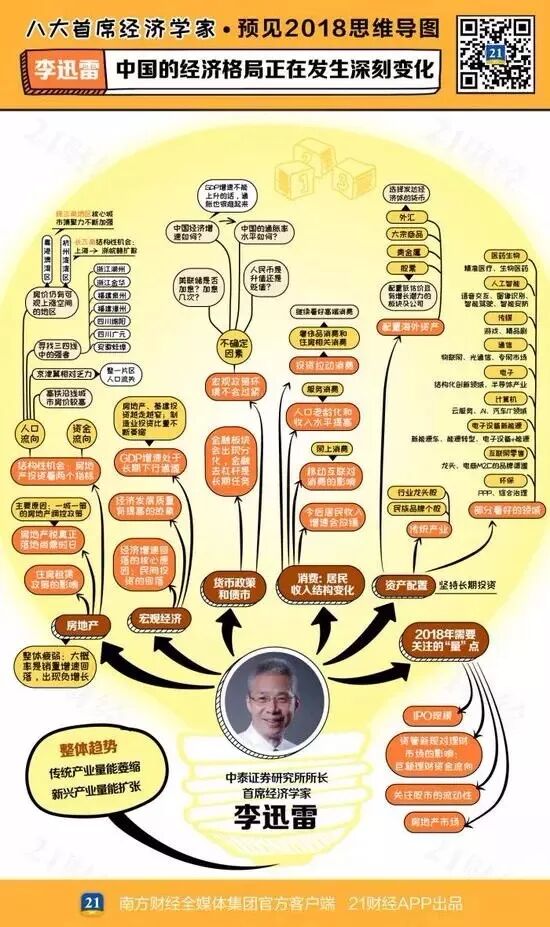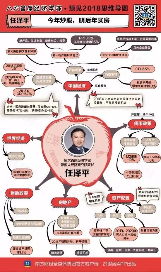 来源:21世纪经济报道八大首席经济学家看2018年投资机会:任泽平:今年炒股,明后年买房;高善文:金融去杠杆不会结束,地产有下行压力;李迅雷