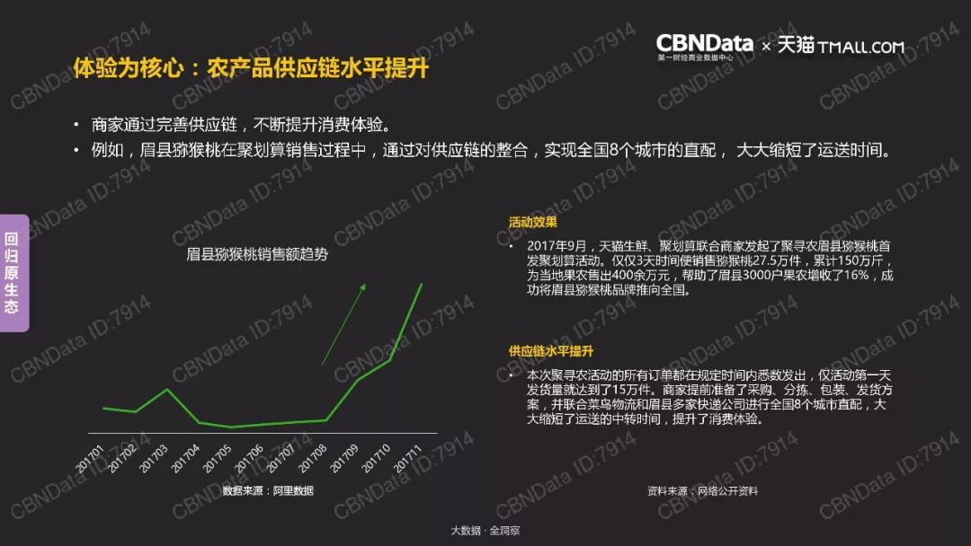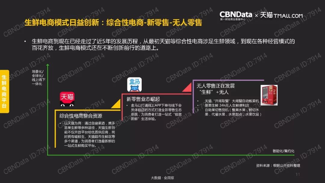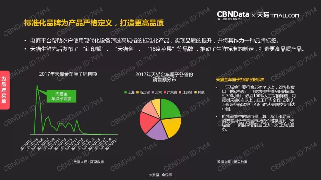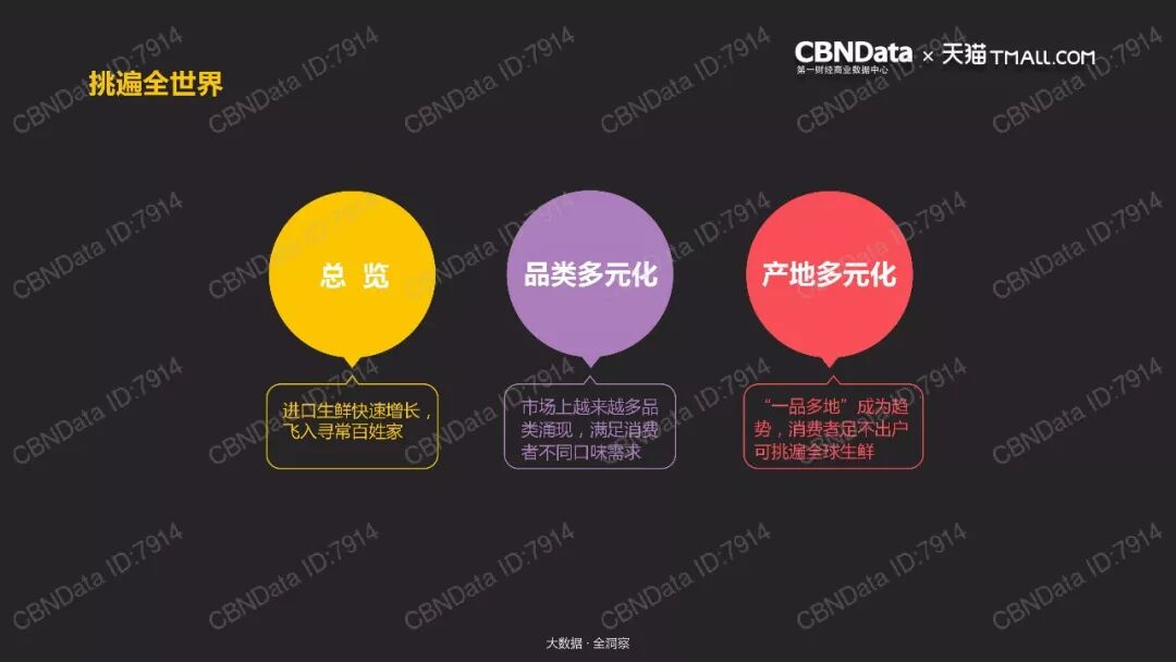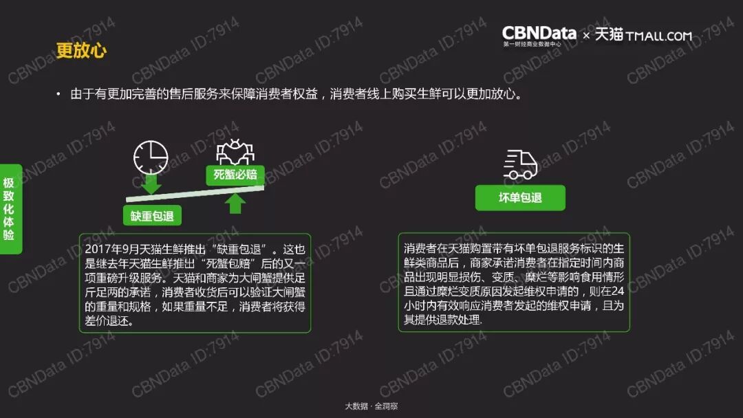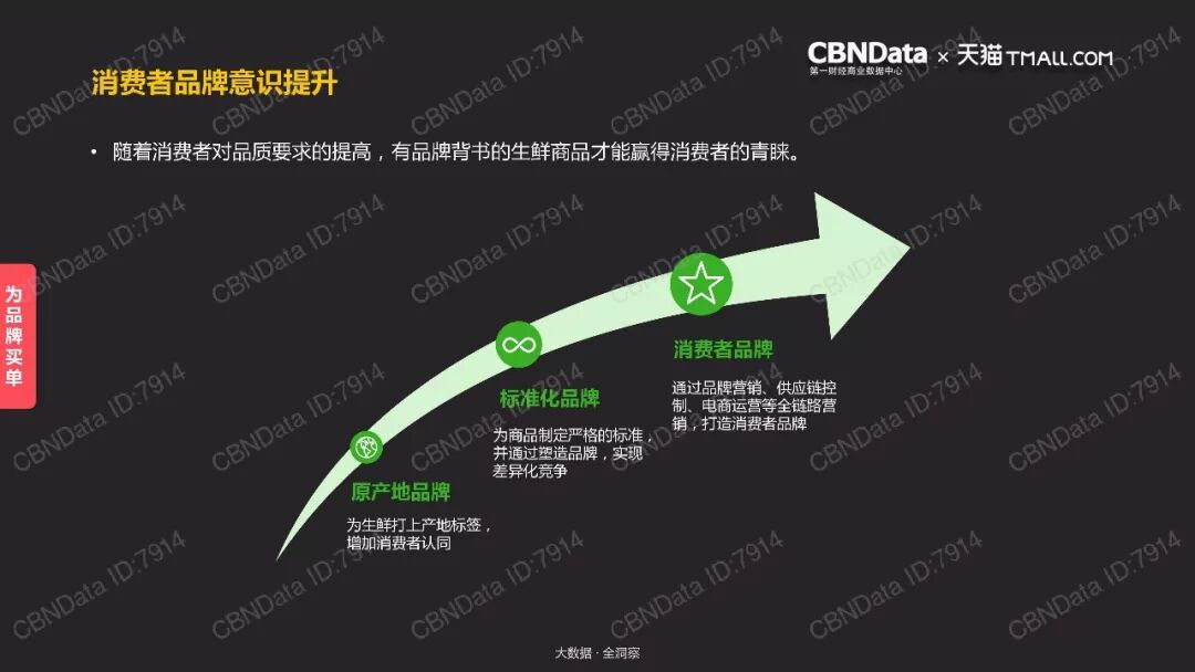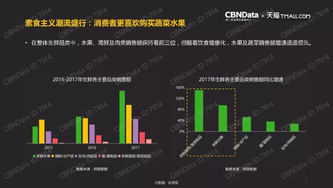 同时,CBNData《报告》揭示了五大生鲜消费升级关键词:健康新概念、挑遍全世界、回归原生态、为品牌买单和极致化体验。此外,CBNData《报告》还指出了未来餐桌消费趋势的四大展望:冷链物流进一步发展带来线上生鲜爆发;线上非标生鲜产品进一步实现品牌化;场景化营销更为普遍,营销趋向内容化;创新的消费体验将持续涌现。