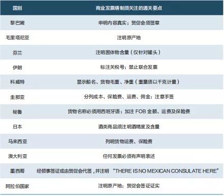 发票缮制过程中,一方面除了须熟悉国际惯例及国际商会意见之外,另一方面还须知晓常见国别地区的通关要求,对个别国家特殊的报关要求有所涉猎。如前述的实务案例而言,我国海关对货物出关持支持开放态度,只要所提交的报关资料币种一致,发票上的单价是否显示了其他币种不会影响通关。但是对于交易对手韩国,在其报关时需提交商业发票、装箱单、按规定要求的许可证以及海关要求的其他单证。就商业发票而言,除了需显示发票号、合同号、日期、买方公司名称、起运港、目的港、唛头、品名、数量、单价、总价之外,还需要按照规定签署并注明各种商业通用说明,以及原产地和支付方式。无论对于企业抑或是银行,知晓国别地区的通关要求非常必要。有鉴于此,笔者总结了国际贸易中一些特殊国家通关时对发票的具体要求,详见下表: