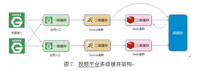 整体分了三部分缓存: 应用Nginx本地缓存、Tomcat堆缓存、分布式缓存,每一层缓存都用来解决相关的问题,如应用Nginx本地缓存用来解决热点缓存问题,分布式缓存用来减少访问回源率、Tomcat堆缓存用于防止相关缓存失效/崩溃之后的冲击。