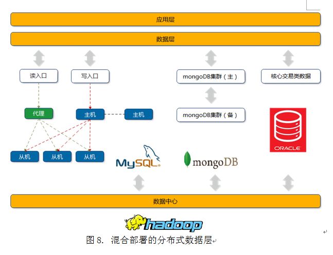 我们考虑关系数据库和非关系数据库并存以更好的应对业务延续和变更,所以在这里也相应的在数据层考虑两种分布式技术并存的方案。