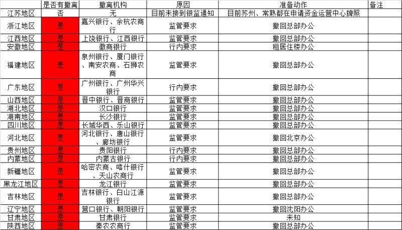 另外,有城商行在年前就已接到相关通知。据多名驻沪银行人士确认,辽宁省的几家城商行于去年已经全部撤出,吉林省除个别银行也都已离开;还有的银行目前正在办理退租手续,人员也开始分流。
