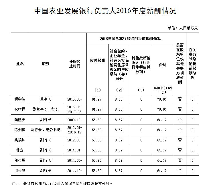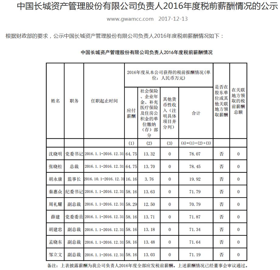 附《中央金融企业负责人2016年度薪酬信息披露》链接:http://jrs.mof.gov.cn/zaixianfuwu/ziliaoxiazai/201712/t20171228_2790102.html