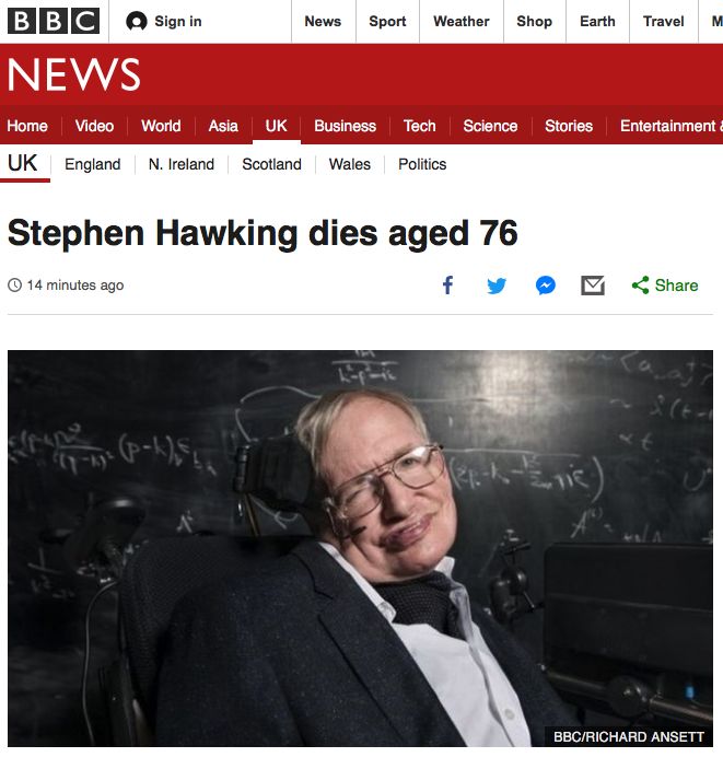 根据多家媒体报道确认,著名物理学家与宇宙学家史蒂芬·霍金逝世,享年76岁,其家人及发言人均已确认此消息。