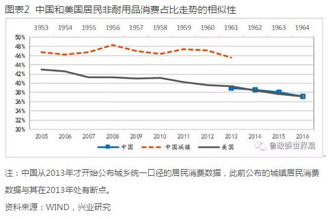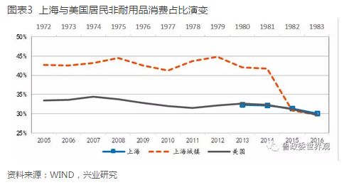 综上,从研究消费走势的目的出发,以非耐用品消费占比的相似性来判断国别间的发展差距可能更为合理。2016年的中国相当于1964年的美国,2016年的上海相当于1983年的美国。