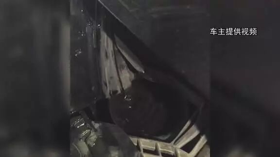 上海途锐车主金先生:“顺着这条沟一路通过这里缝隙最后进到那个,就这个进气口,进气管正好像个漏斗一样的把水全部集中进去。如果一旦发动机一开机的话,直接从这边呼一口吸进去,直接能把发动机闷熄火了。”