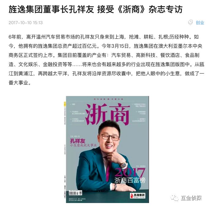 网上现在还能看到2017年时,关于旌逸集团实际控制人孔祥友的报道: