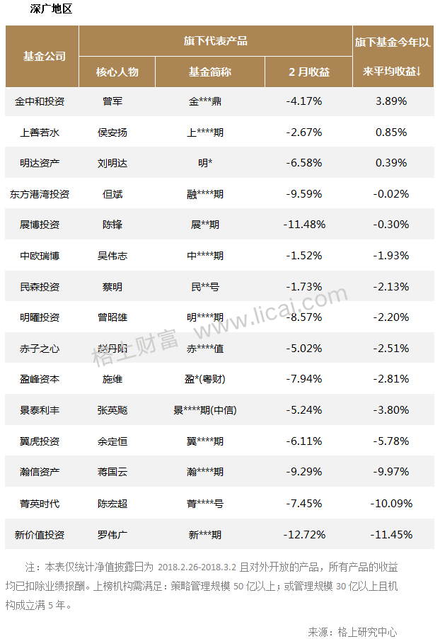 在这样的市场环境下,不少股票型的私募基金均出现了大幅回撤,全月只有2成的产品获得了正收益,主流机构中,只有三家的代表产品取得了正收益。虽然遭遇市场调整,今年以来依旧有部分规模以上的私募机构取得不错的收益,如金中和投资旗下基金今年以来平均收益3.89%,源乐晟资产旗下基金今年以来平均收益2.06%。对于后市,源乐晟资产坚持认为慢牛是市场运行的主要特征,股票在各类资产里相较而言更有吸引力,在估值弹性较小的背景下,投资者需要敢于在低位买入。对于近期创业板为代表的科技题材表现活跃,源乐晟资产认为目前中小票的基本面没有明显改善,创业板短期仍处于高估状态,受政策和事件驱动题材炒作活跃,但长期看市场风格仍不会切换,会继续关注行业前景好、本身成长性好且业绩稳健公司。