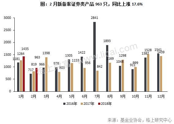 1、2月份新备案产品2576只,新备案证券类产品963只