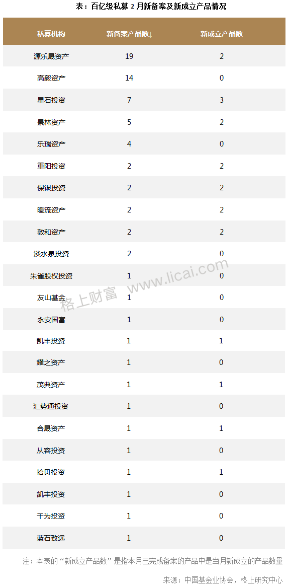 2、23家百亿级私募新备案72只产品,源乐晟单月备案19只产品