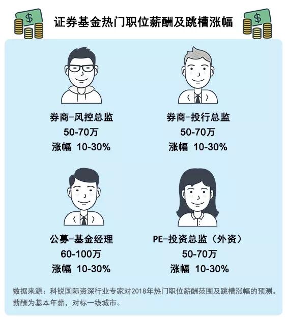 证券基金领域薪酬整体平稳,跳槽涨幅通常在10%-30%,其中投资银行等领域薪酬涨幅较大,可达30%-50%。