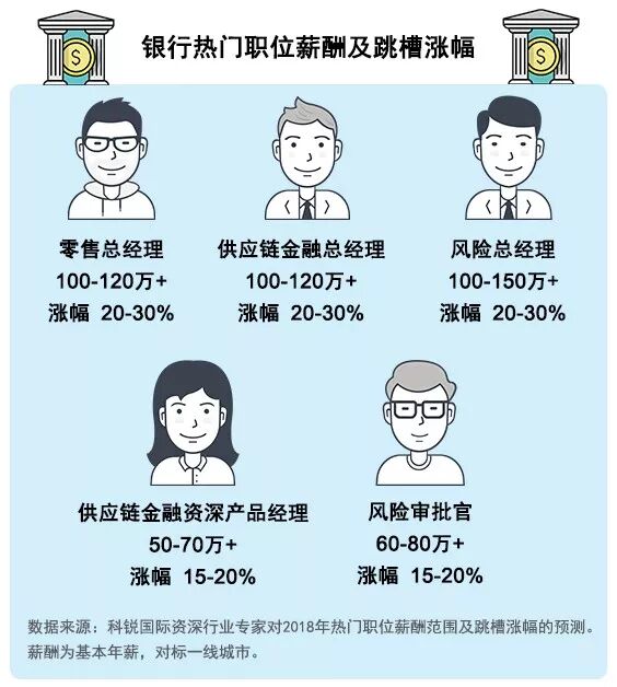 银行传统领域薪酬趋稳,但在零售、供应链金融、交易银行、技术等快速发展板块,涨幅在30%左右。