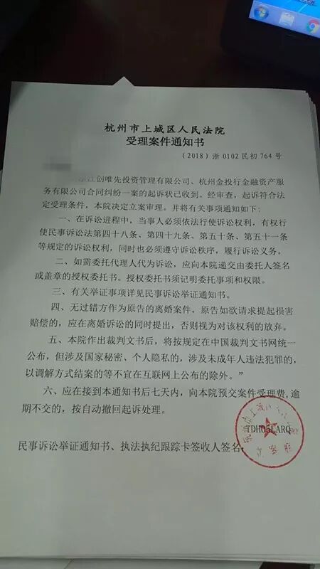 目前,投资人已将“创唯先”与“金投行”向杭州市上城区人民法院起诉,法院在3月22日开庭审理了此案,目前正在等候法院审判。