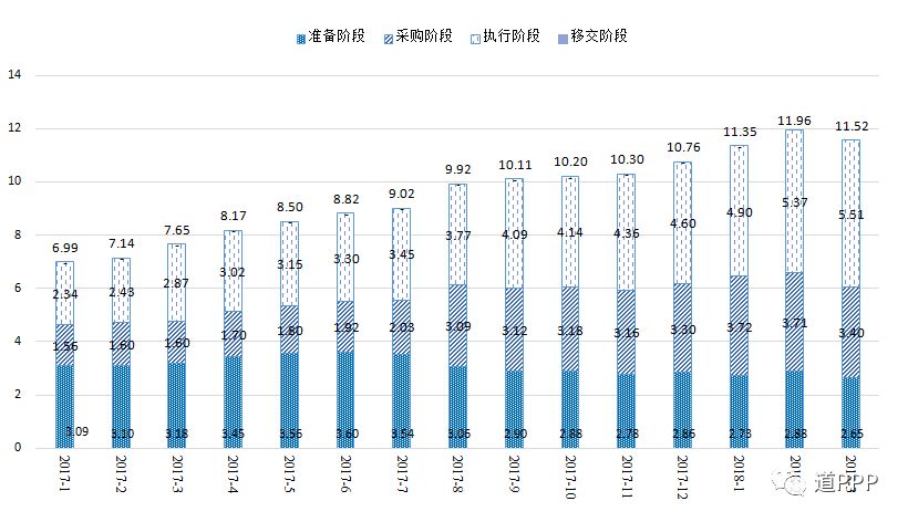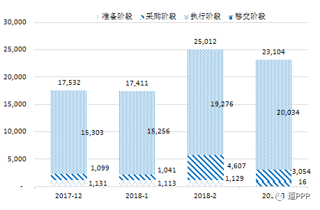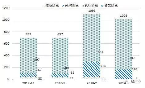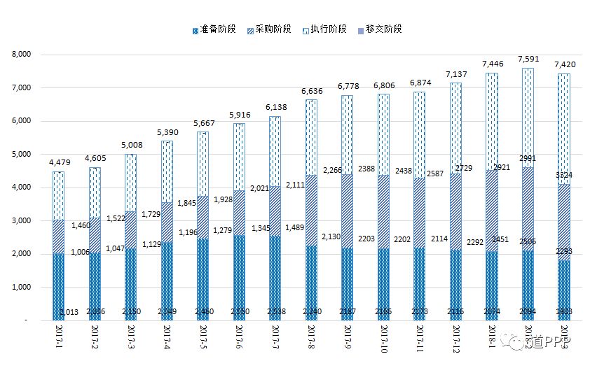 按照《关于规范政府和社会资本合作综合信息平台运行的通知》(财金〔2015〕166号)要求,建立了全国政府和社会资本合作(PPP)综合信息平台及项目管理库。PPP项目按全生命周期分为识别、准备、采购、执行和移交5个阶段,其中,准备、采购、执行和移交4个阶段的项目被纳入管理库。截至2018年3月末,综合信息平台项目管理库情况如下: