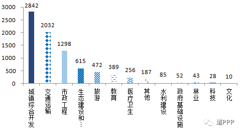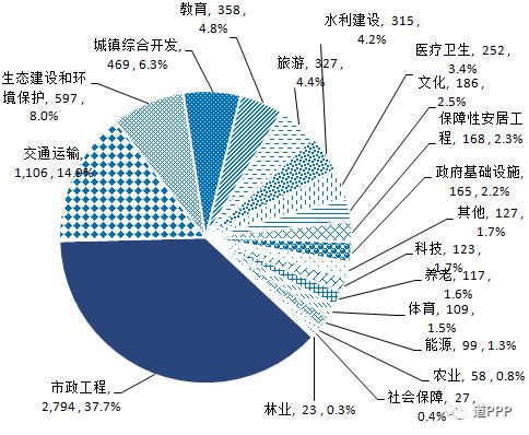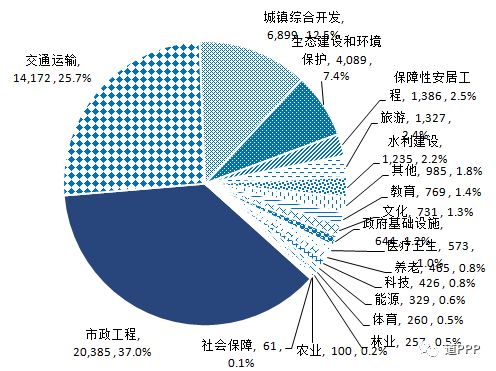 行业分布3月新增落地项目数前三位是市政工程、交通运输、生态建设和环境保护,分别为137个,47个、45个,合计占新增落地项目总数的68.6%。3月新增落地项目投资额前三位的是市政工程、交通运输、城镇综合开发,分别为1,572亿元、1,177亿元和1,029亿元。