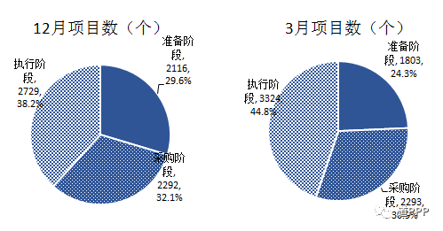 图3-4-1 12月末与3月末管理库准备、采购、执行阶段项目数分布