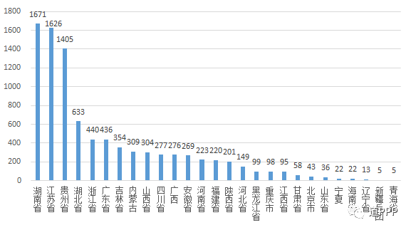 地域分布3月新增落地项目数前三位是湖南、江苏、贵州,分别为71个、44个、36个,合计占新增落地项目总数的45.2%。3月新增落地项目投资额前三位是江苏、湖南、贵州,分别为1,281个、1,057个、962个。