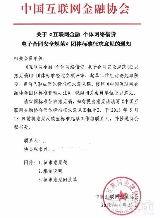 【政策】中国互联网金融协会关于《互联网金融 个体网络借贷电子合同安全规范》团体标准征求意见的通知