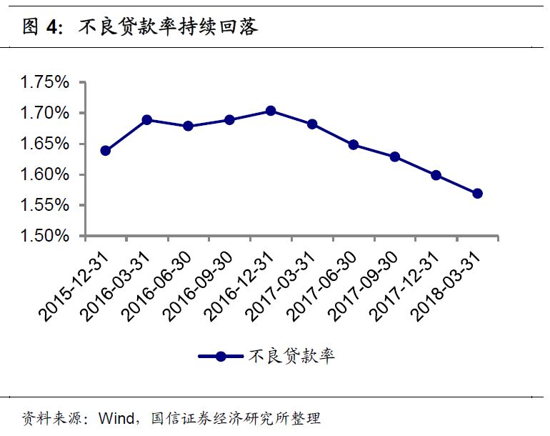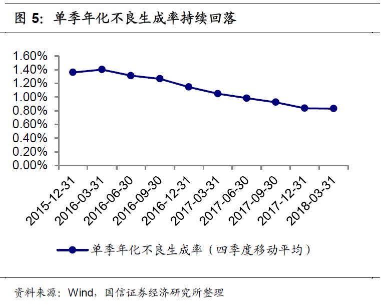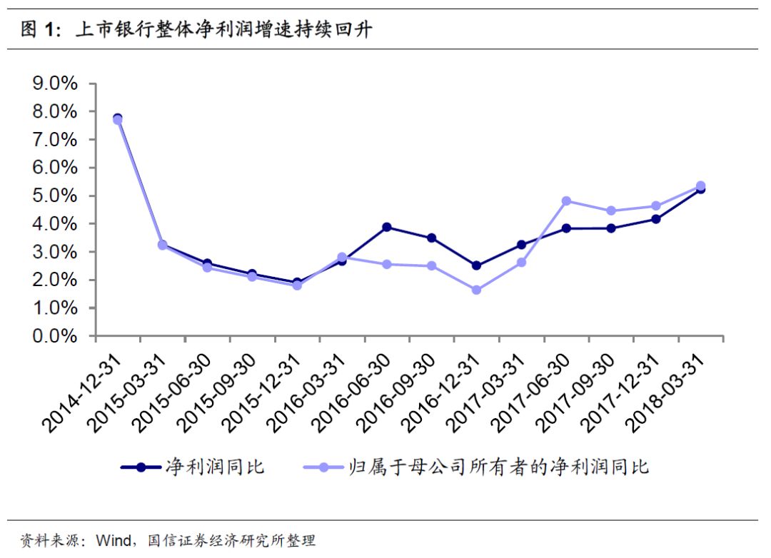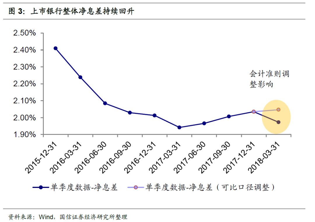 净息差回升驱动盈利。2017年后三季度行业净息差逐季回升,可比口径调整后2018年一季度净息差环比继续上升约1bp,驱动行业净利润增速回升。