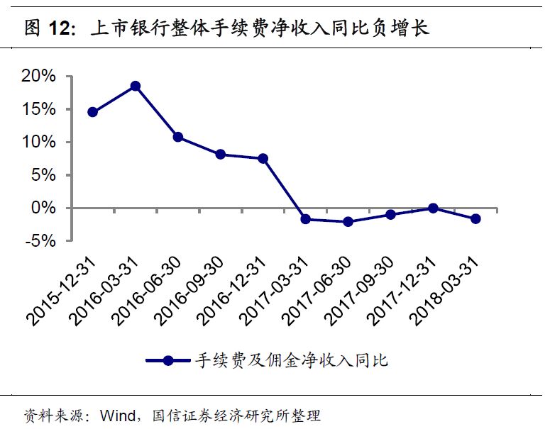 一季度上市券商业务同比下滑11%,主要是因为从刚刚披露的上市银行2017年报和2018年一季报数据来看,行业净利润增速继续回升,显示出向上的行业景气度。上市银行整体(指16家老上市银行合计,下同)2017年净利润同比增长4.2%,归母净利润同比增长4.6%;2018年一季度净利润同比增长5.2%,归母净利润同比增长5.3%,增速回升。