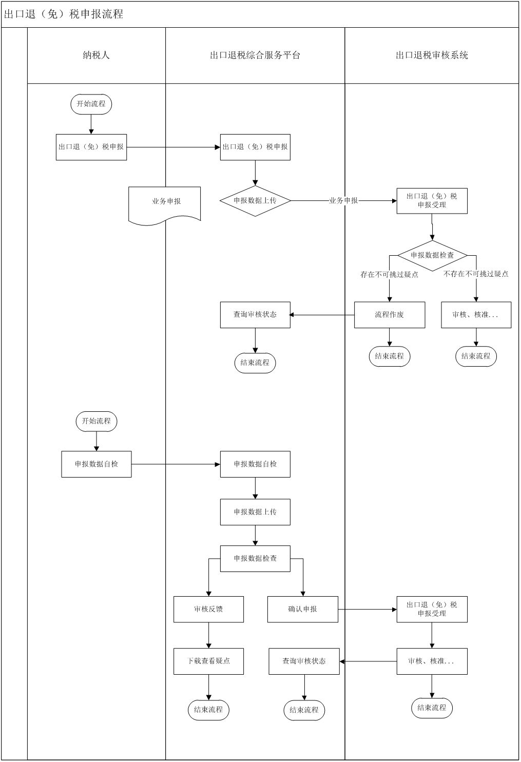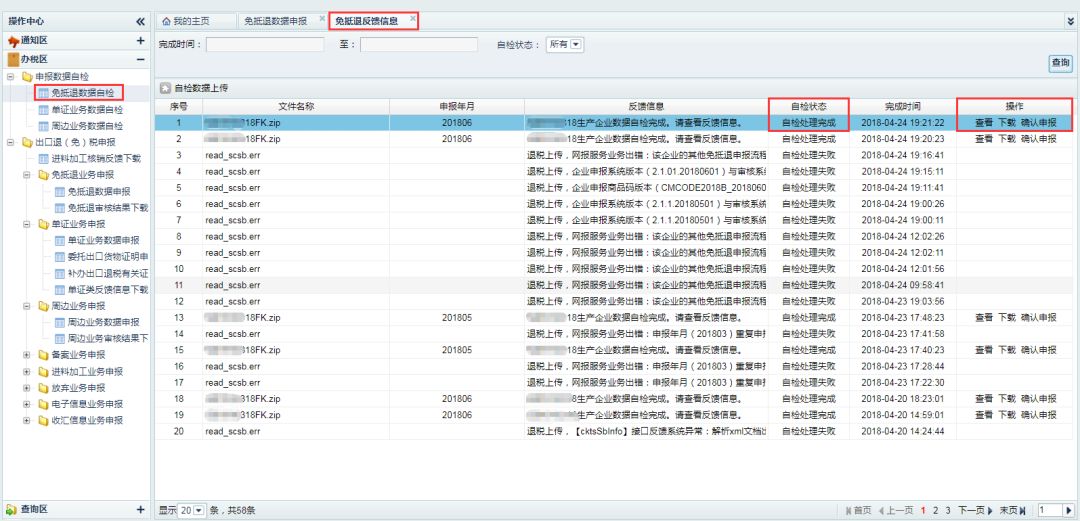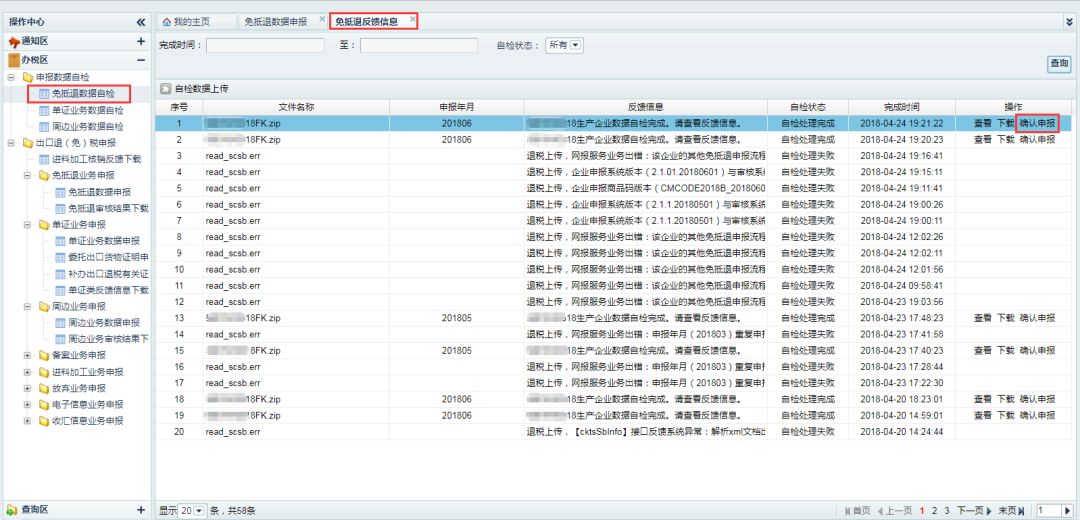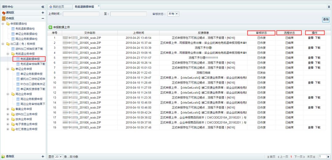 为了深化贯彻落实“便民办税春风行动”,简化纳税人出口退(免)税业务申报流程,出口退税综合服务平台(以下简称平台)对出口退(免)税申报业务进行升级完善,具体调整内容是怎么样的呢?快拿起本子,随小编往下学习: 1 平台调整内容 出口退税综合服务平台此次的出口退(免)税申报流程调整如下: (一)取消预申报预审功能 根据国家税务总局《关于出口退(免)税申报有关问题的公告》(国家税务总局公告2018年第16号)的最新的工作要求,出口退税综合服务平台取消了预申报及预审核功能,纳税人可直接通过平台进行出口退(免)税申报。 (二)调整出口退(免)税申报 为方便纳税人更加灵活的进行出口退(免)税业务申报,出口退税综合服务平台升级完善了申报方式,可直接进行出口退(免)税业务申报,具体内容如下: 纳税人通过平台可直接将出口退(免)税申报数据传递至税务机关出口退税审核系统中,出口退税审核系统会将申报数据自动推送至受理环节进行审核。审核如存在不可挑过疑点,出口退税审核系统会自动将审核流程作废并提供查看疑点信息;如不存在不可挑过疑点申报数据会直接转入受理岗,待税局机关进行受理。 平台同时会将受理状态实时的反馈给纳税人,供纳税人查看状态、下载等操作。 (三)增加申报数据自检功能 平台增加出口退(免)税申报数据自检功能,可对免抵退、免退税、单证业务、周边业务等申报数据进行数据审核检查,减少存在不可挑过疑点数量,增加出口退(免)税申报成功次数。 2 调整后申报流程 (一)申报流程 出口退(免)税申报流程具体如下: (二)申报操作说明 1、出口退(免)税申报 (1)申报数据上传 纳税人可直接上传出口退(免)税申报数据,完成出口退(免)税申报。 (2)审核状态查询 纳税人可通过“数据申报”界面,查询审核状态、流程状态等操作。 2、申报数据自检 (1)自检数据上传 纳税人可通过“申报数据自检”界面,上传申报数据进行数据检查。 (2)审核结果下载 纳税人可通过“自检反馈信息下载”界面,下载申报数据检查结果,并提供平台在线查看、下载导入出口退税申报系统查看检查结果等功能。 (3)确认申报 纳税人可通过“申报数据自检”界面,自检结果不存在不可挑过疑点时,可提供“确认申报”申报至税务机关。