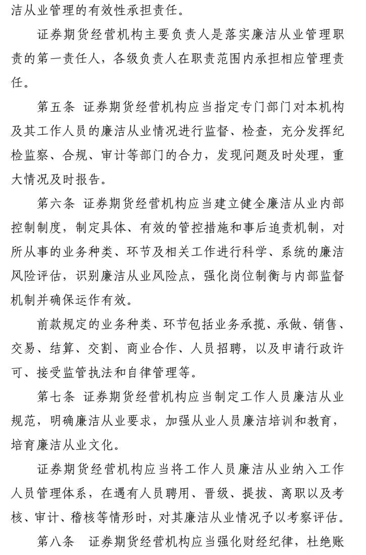 反腐败要坚持“无禁区、全覆盖、零容忍”,证监会相关人士表示,需进一步整顿市场秩序,净化市场环节,铲除腐败毒瘤,有必要以部门规章的形式颁布《规定》,统一行业认识、明确经营机构及其工作人员廉洁从业的专项要求、建立长效机制,促进行业廉洁从业监管制度化、常态化。通过督促经营机构建立健全廉洁从业内部控制管理体系,严肃处理廉洁从业管控不到位的行为,进一步提高行业机构执业质量,推动新阶段证券期货行业规范发展。