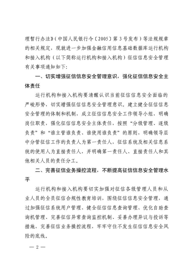联席君:央行在近期发布的一份通知中要求,征信运行机构和接入机构未经授权严禁查询征信报告,严禁未经授权认可的APP接入征信系统。此外,要求成立征信信息安全工作领导小组,明确领导层中分管征信工作的负责人为第一责任人。