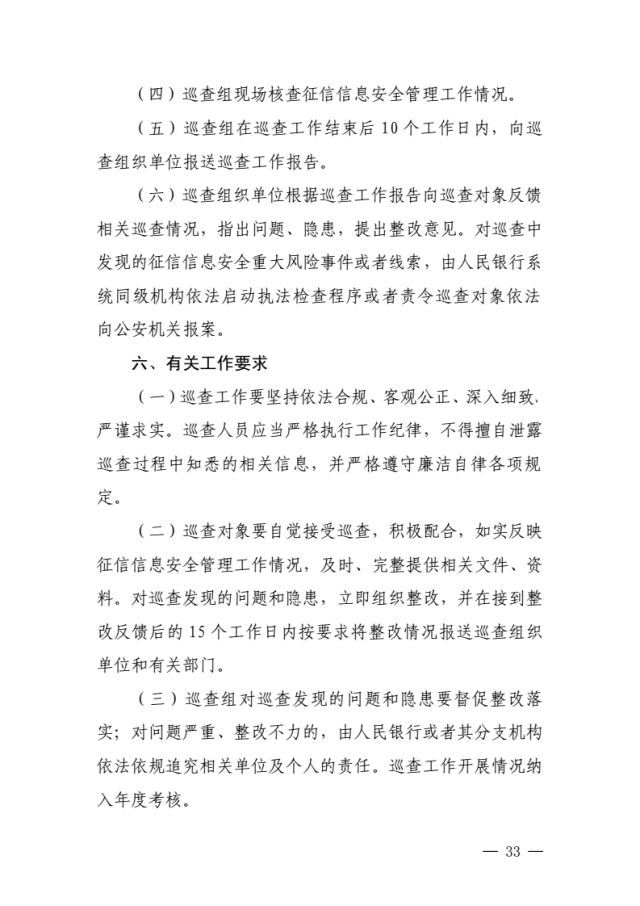 根据102号文,征信运行机构和接入机构未经授权严禁查询征信报告,严禁未经授权认可的APP接入征信系统。此外,要求成立征信信息安全工作领导小组,明确领导层中分管征信工作的负责人为第一责任人。