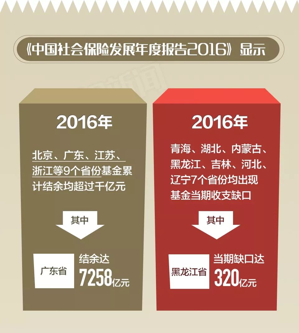 目前,我国的职工养老金筹集和发放比较分散,有的地方实现了省级统筹,有的地方还是市县统筹以及发放,而且每个地方的发放水平也不一致。在人口老龄化背景下,就业人口的区域流动、财力增长的区域差异,导致养老抚养比、养老资金池规模、养老支付压力不仅在省际层面存在着明显差异,在各省内部也存在不平衡现象,一些地方的养老金收支已经出现缺口:同一个时间段的养老基金收入不抵支出。