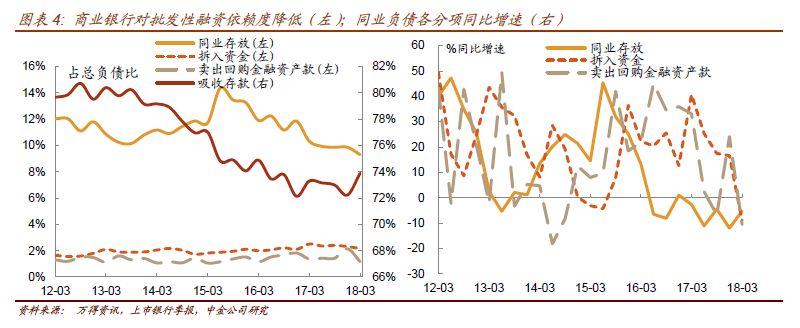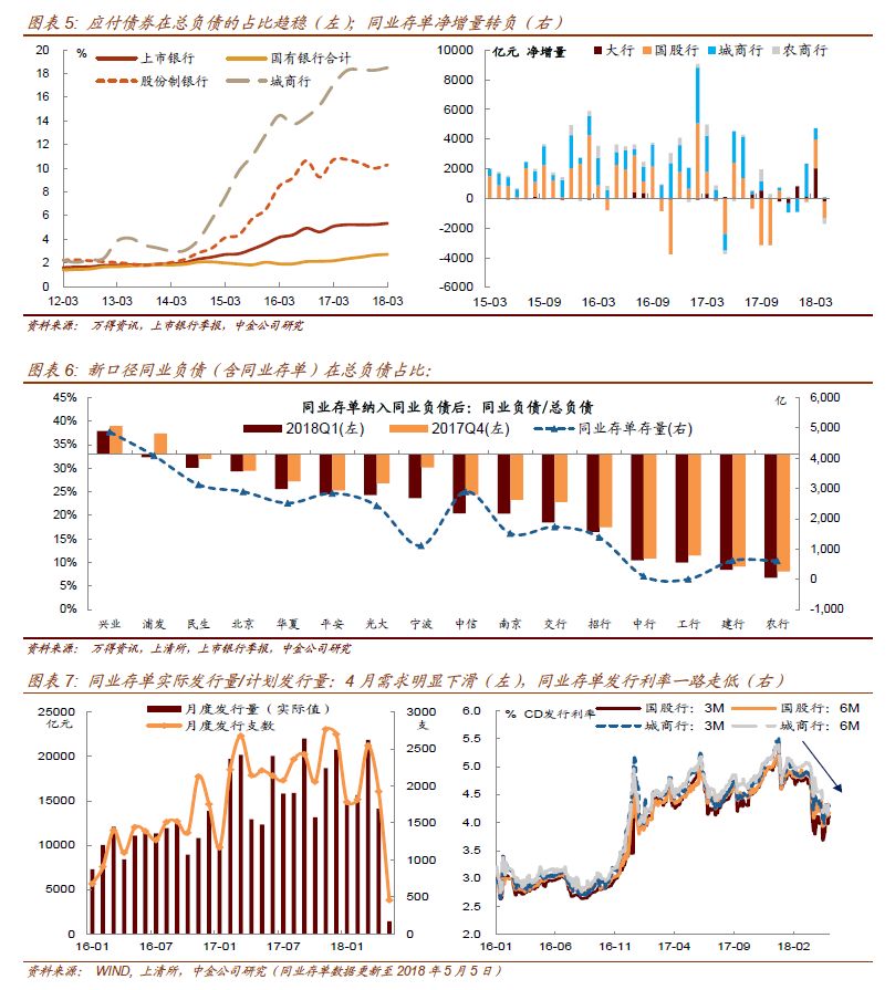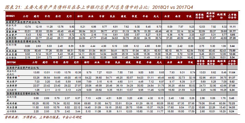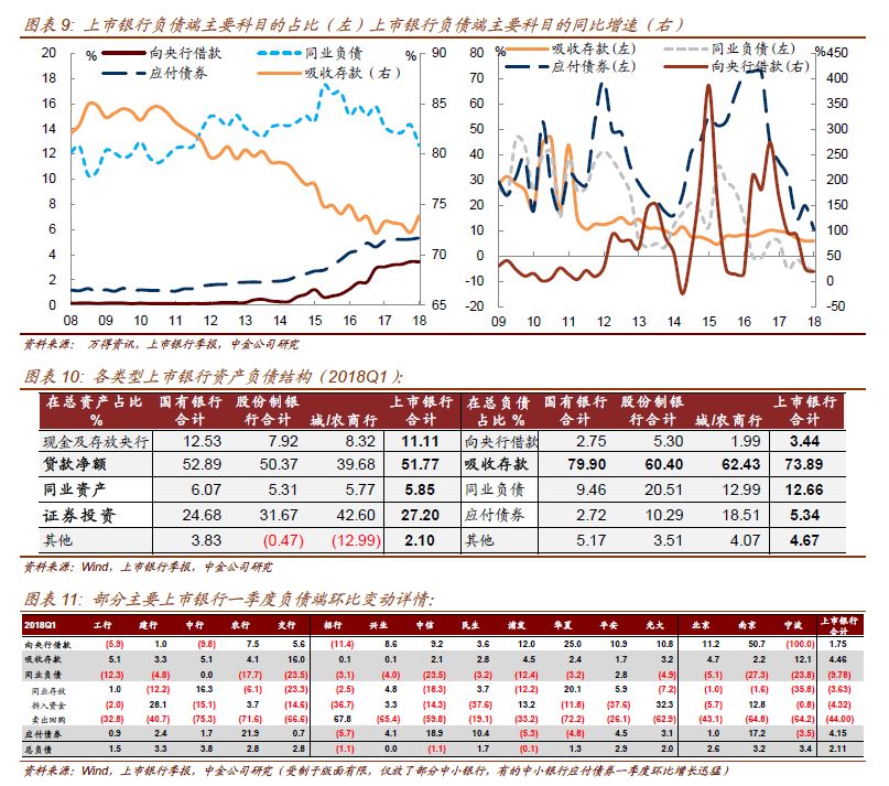 从上市银行2017年年报和2018年一季报所披露的负债端来看: