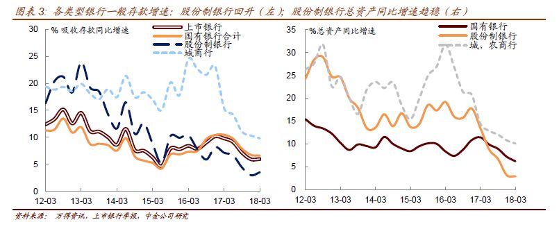 (1)一般存款:股份制银行吸收存款同比增速回升较为明显