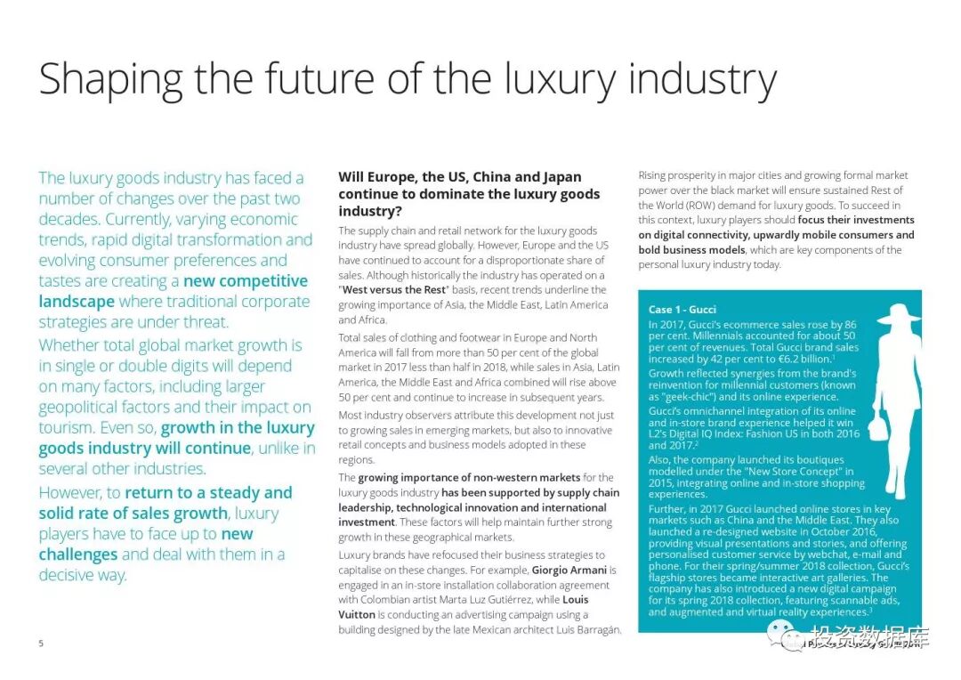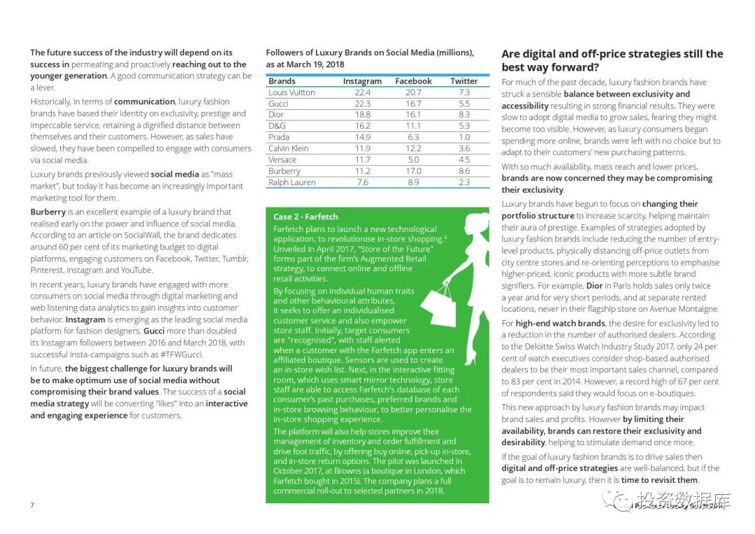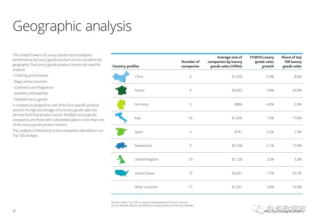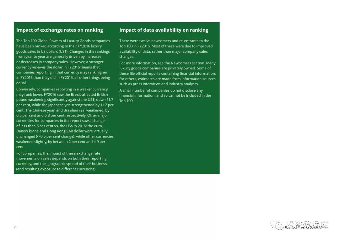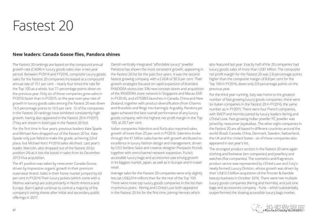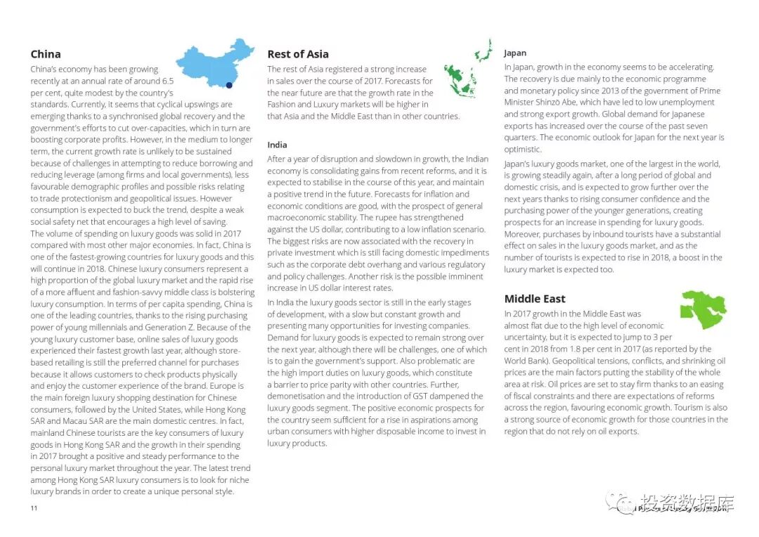 德勤咨询《2018年全球奢侈品力量排行榜》,依据年度销售额对全球奢侈品公司进行排名。在截止2017年6月30日的2016/2017财年,这份报告得出的主要数据如