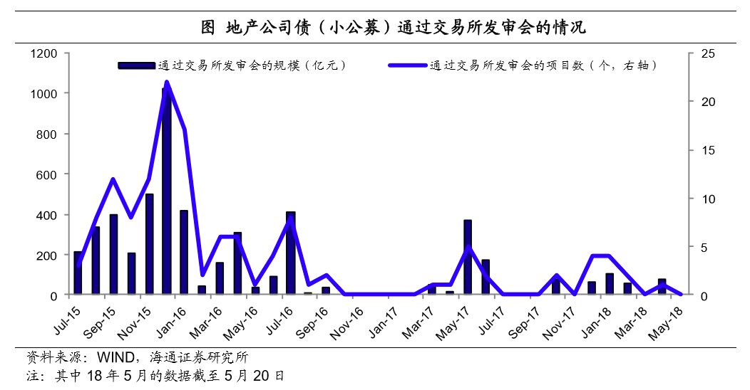 17年四季度以来地产公司债审批确实较前期加快。根据我们的统计,17年发出来的公司债,大部分是在16年9月之前拿到的发行批文,而17年四季度新批(16年9月之后获证监会批准发行)小公募的发行增多,18年以来发行的20只小公募中,除了华侨城的6只、大华集团和金地集团各1只外,均是2017年以后拿到的批文。