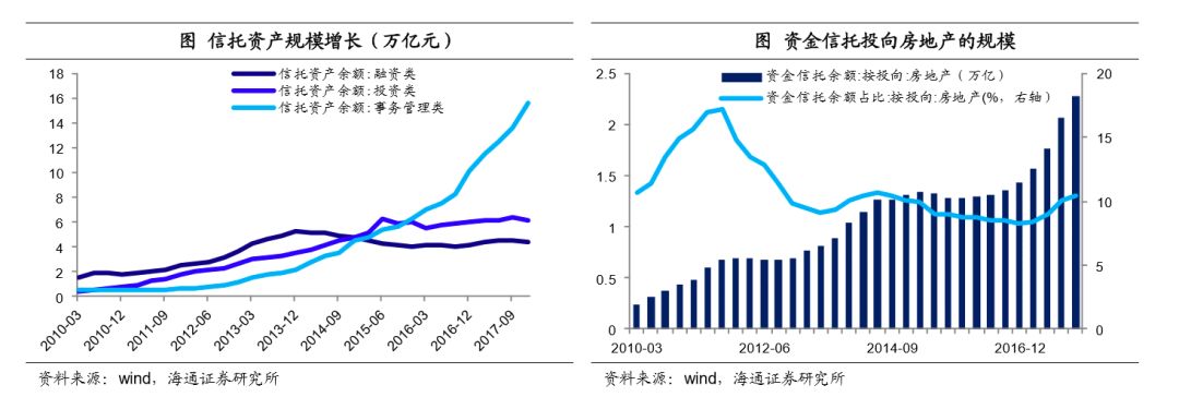 地产行业信托融资规模一度大增。根据信托业协会公布的数据,17年底资金信托投向房地产的余额为2.28万亿,较16年底增加0.85万亿,占所有资金信托余额的占比也从16年底的8.19%提高到10.42%。